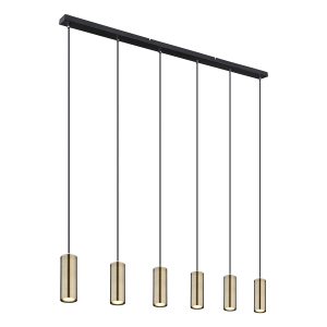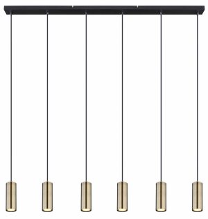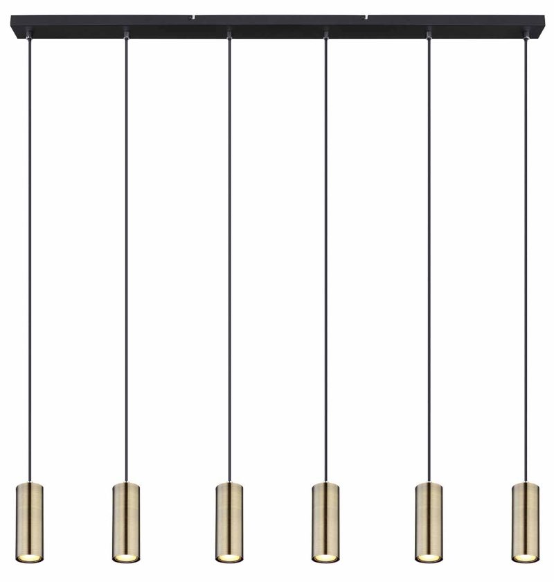 Descubre la elegante belleza de la lámpara colgante de la serie Robby, revestida en un estiloso negro. Con un soporte de techo mate de 115 cm, seis cables se extienden hasta una longitud de 1,2 m, cada uno culminando en un conector GU10, envuelto en un tono bronce cilíndrico. Personaliza tu experiencia de iluminación con una potencia de hasta 35 vatios y selecciona tu color de luz y brillo preferidos a través de los conectores GU10. Combina con otras luminarias de esta serie para un diseño interior armonioso y encantador en tu espacio habitable.