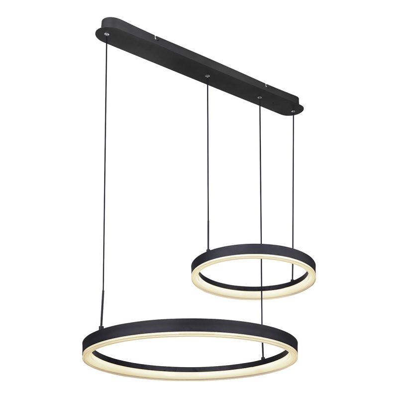 Descubre la elegante refinación de nuestra lámpara colgante AUGUSTO con su combinación de una carcasa metálica negra mate, detalles en color dorado y una pantalla de acrílico satinado opal. Esta solución de iluminación regulable se puede ajustar de manera flexible con una variedad de niveles de brillo, un cambiador de colores RGB, que se pueden controlar a través de un interruptor de pared o el control remoto incluido. Gracias a características como la función de memoria, luz nocturna y altura ajustable, esta lámpara se adapta sin esfuerzo a cualquier habitación. La lámpara ofrece una potente iluminación LED de 50W, un brillo de 500-6000lm y una temperatura de color cálida de 2700-6000K, incluyendo un LED RGB adicional de 6W.