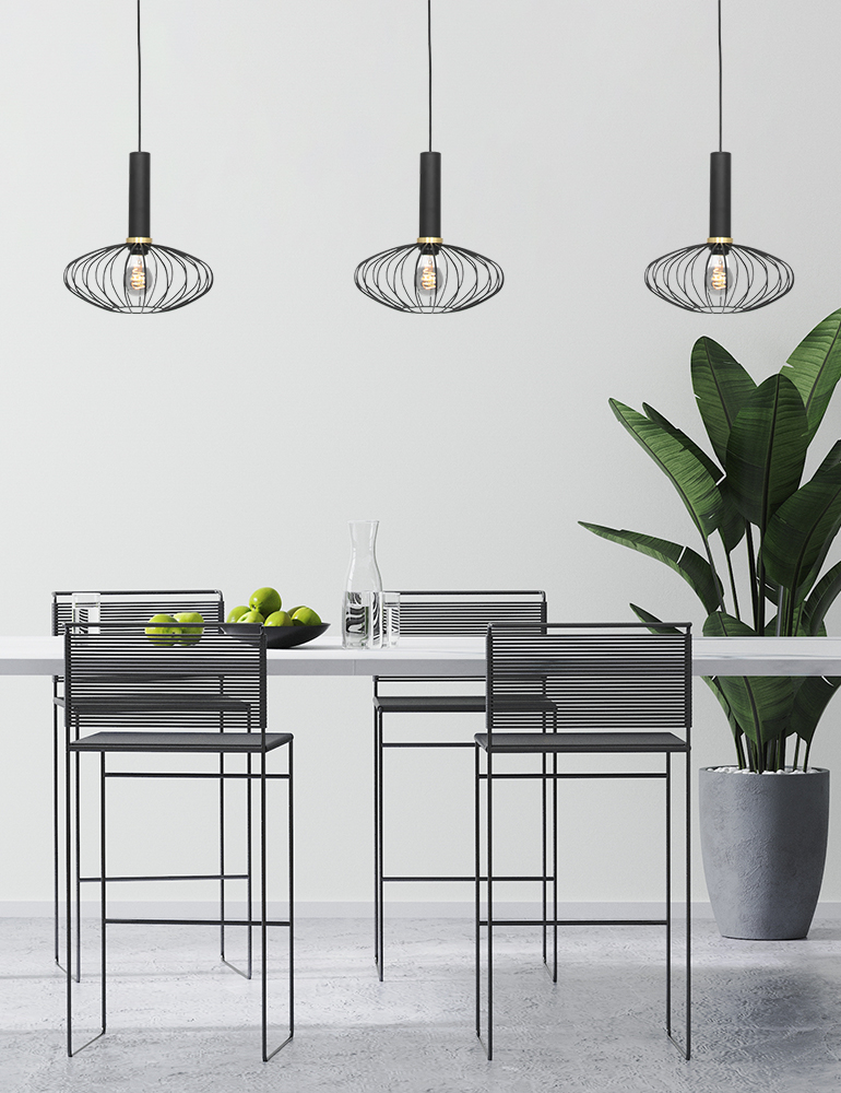 “Aureole” significa aureola en inglés. Es probable que Mexlite haya dado ese nombre a esta lámpara colgante debido a la luz rayada que provoca las rejillas. “Aureole” es una lámpara en forma de óvalo hecha de alambre metálico negro. Combínala con su versión más redonda de la serie Aureole y cuélgalas a diferentes alturas una al lado de la otra. Seguro que disfrutarás de ese rincón que ahora es mucho más acogedor.