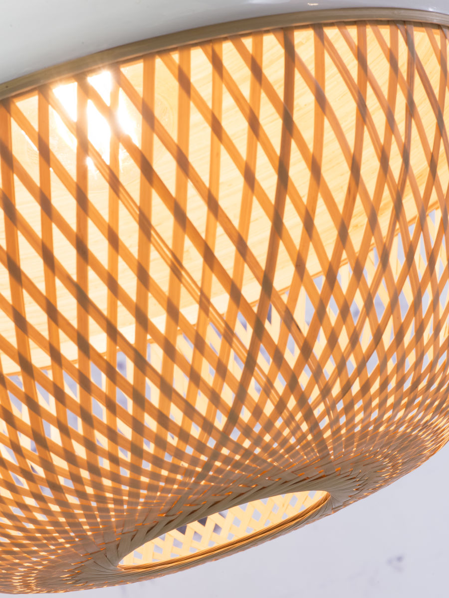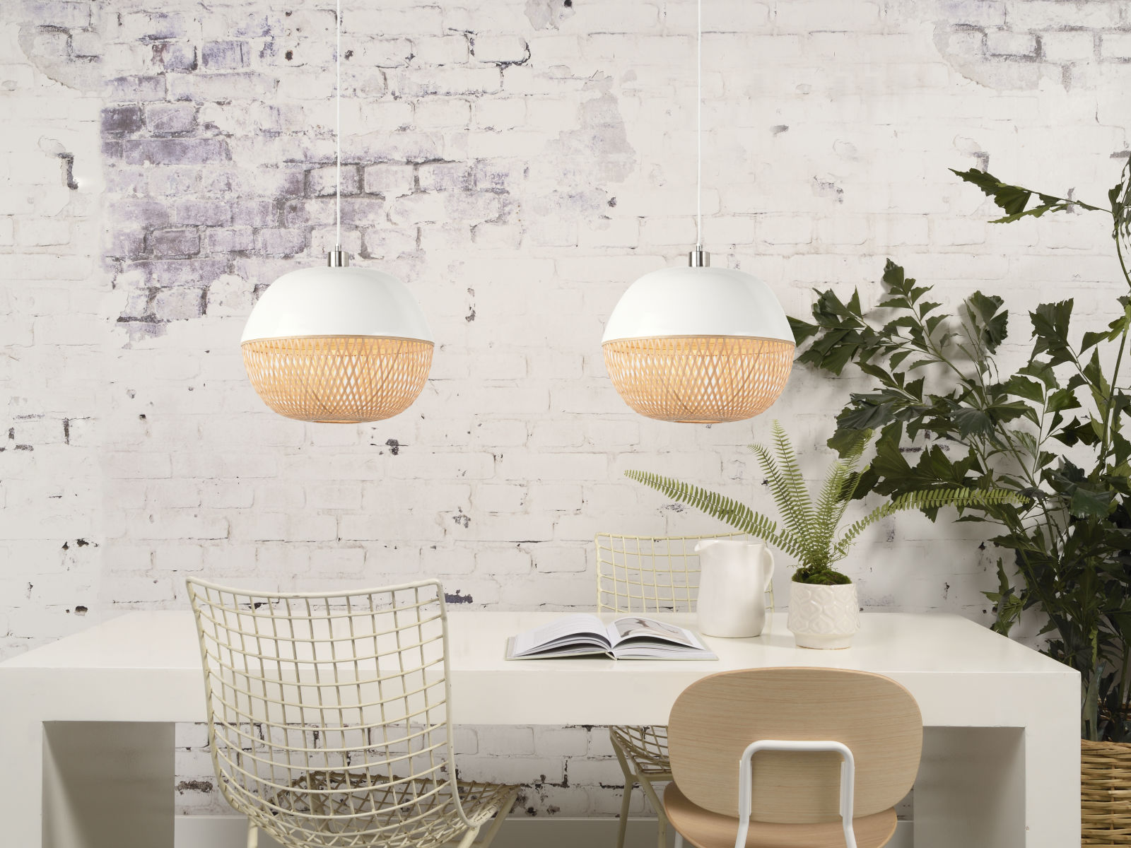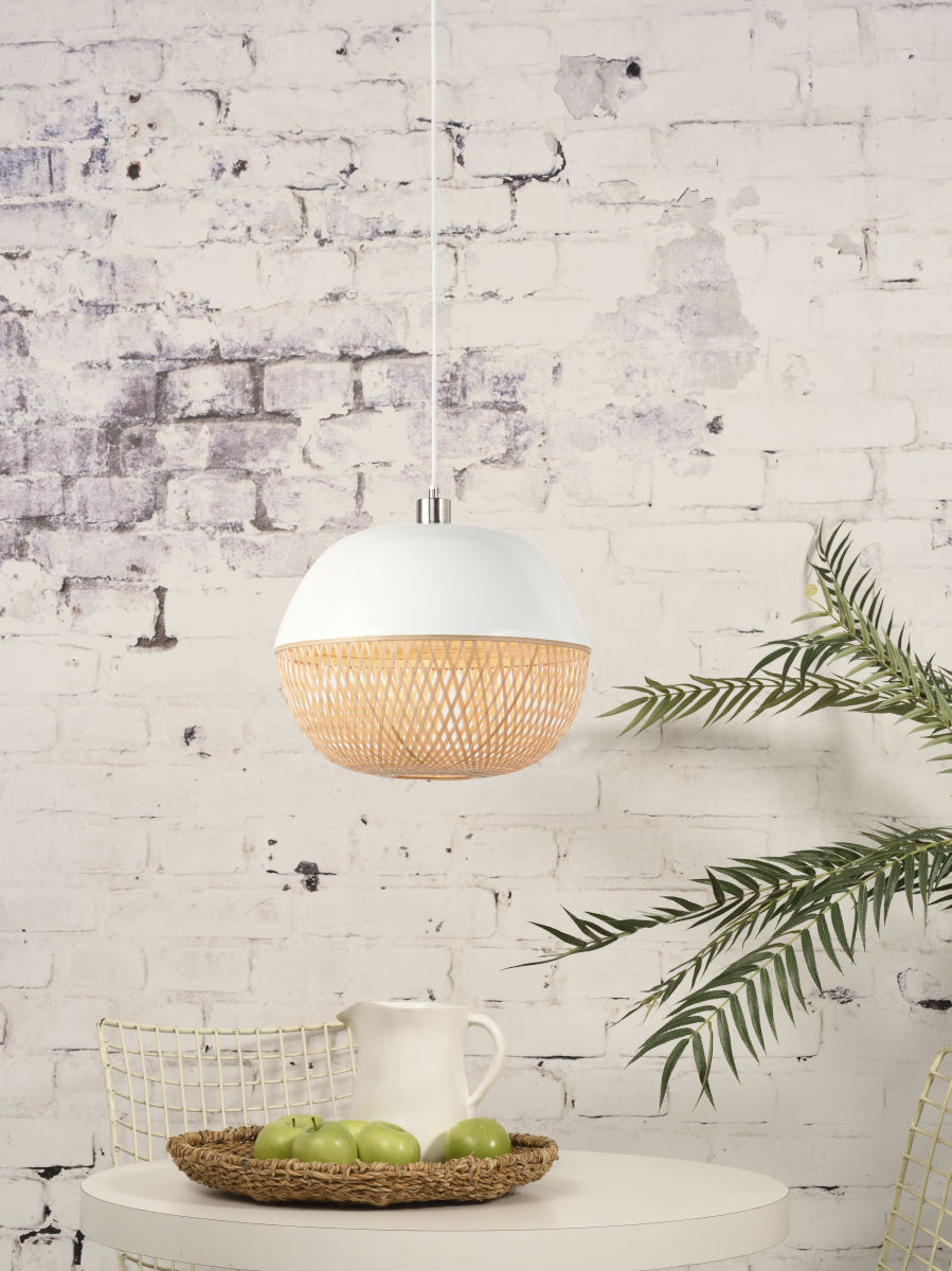 Lámpara colgante redonda blanca metal/bambú GOOD & MOJO Mekong