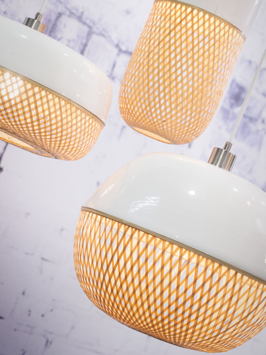 Lámpara colgante redonda blanca metal/bambú GOOD & MOJO Mekong