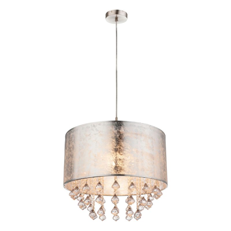 La llamativa lámpara colgante Amy combina diseño y materiales de alta calidad. El marco de níquel mate, la pantalla de tela en color plateado y los cristales la convierten en un atractivo en cualquier espacio habitable. Con un diámetro de 40 cm y un casquillo E27, puede ajustar la intensidad de la luz y la temperatura de color con diferentes bombillas. Se recomiendan bombillas LED de bajo consumo.
