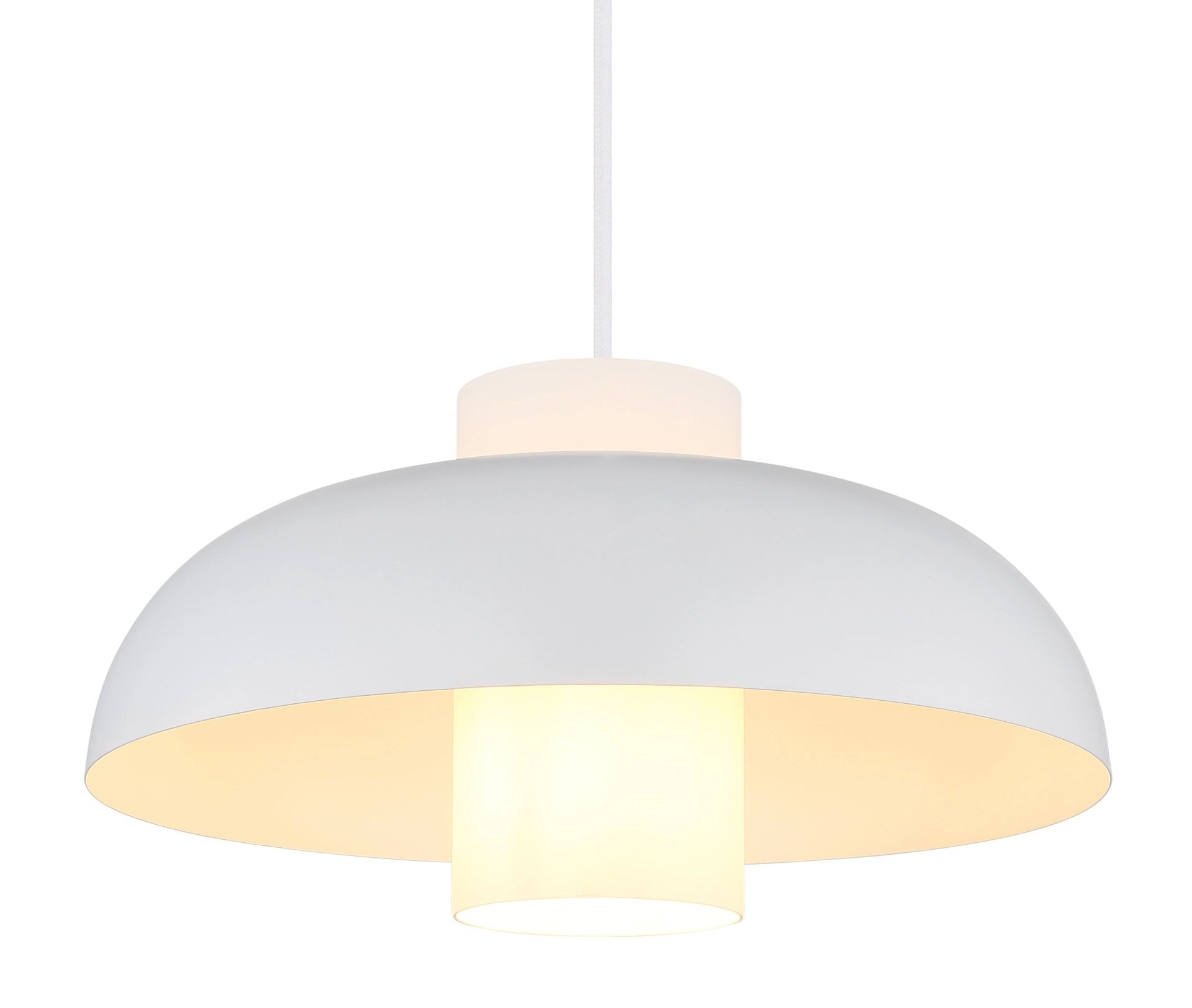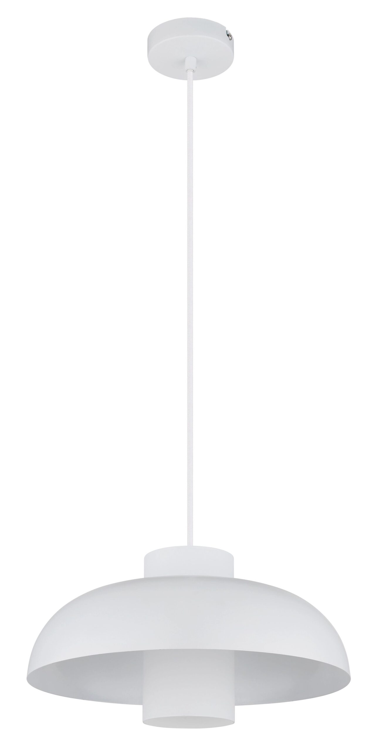 La lámpara colgante KOEN está diseñada para iluminar con estilo y ambiente. Con su forma plana y redonda y su cilindro de vidrio opalino, esta lámpara añade un acento refinado a su interior. La pantalla metálica blanca mate y el cuerpo a juego hacen que la lámpara sea ideal para espacios de vida modernos y minimalistas. Compatible con un casquillo E27 (excluido), esta fuente de luz atemporal ofrece tanto funcionalidad como elegancia en cualquier habitación.