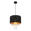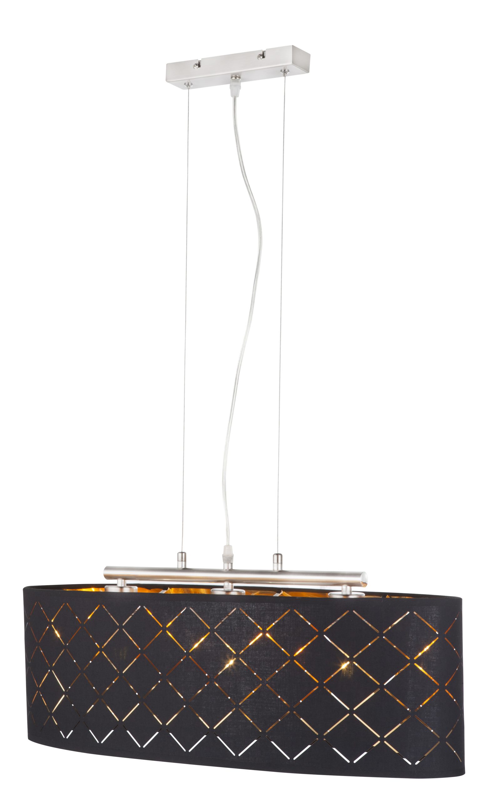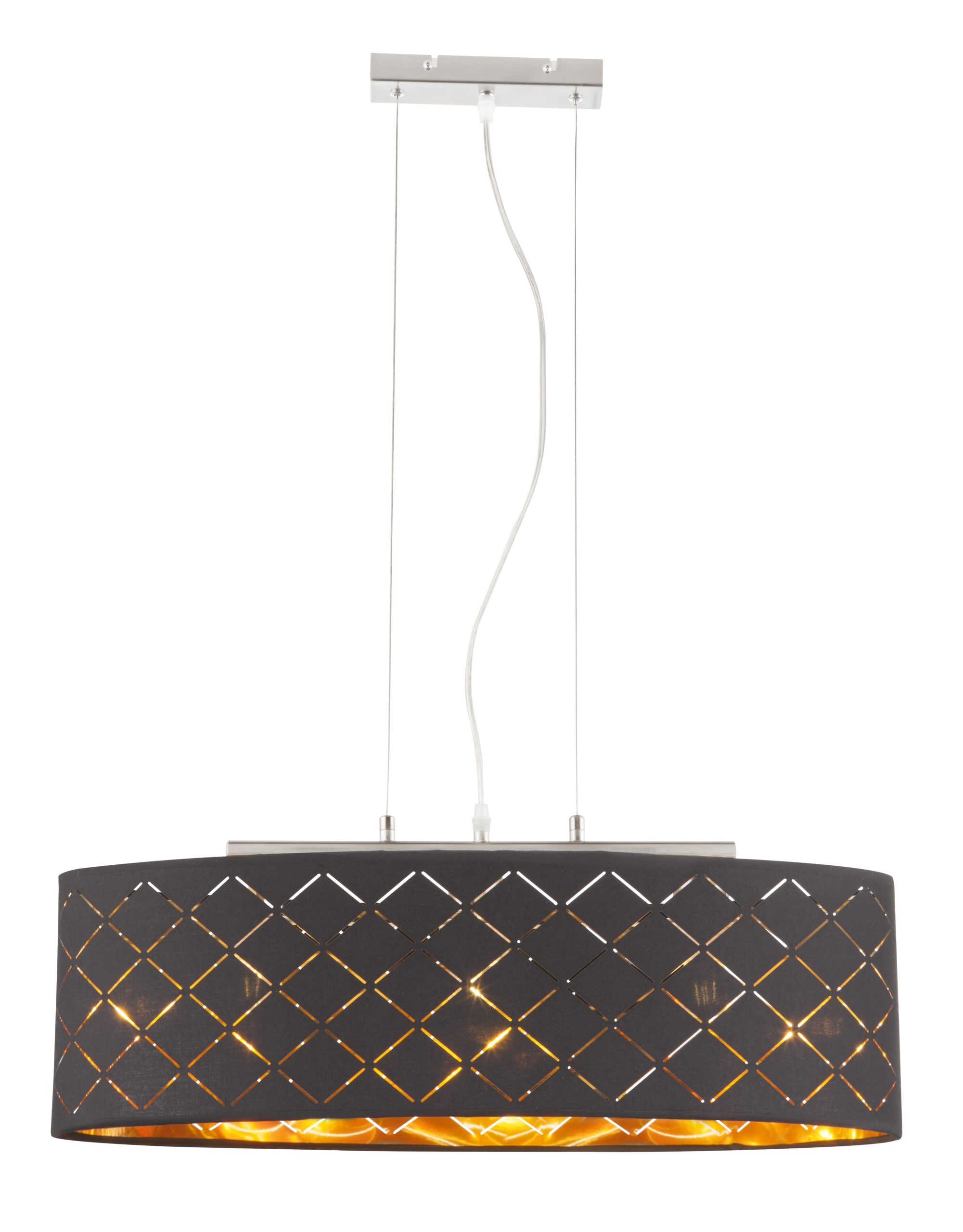 La lámpara colgante matnickel con una pantalla de tela negra y dorada ilumina su espacio con estilo. Equipado con tres casquillos E27 LED, ofrece una potencia de luz de 1065 lúmenes. Ideal para encima de mesas de comedor o en salas de estar donde se desea una atmósfera acogedora.