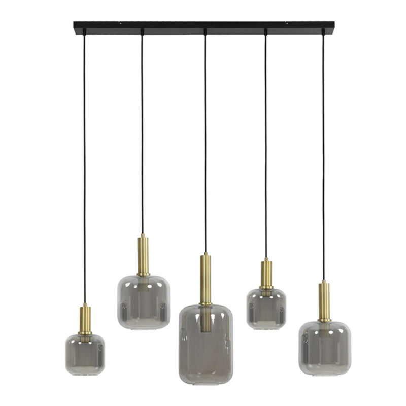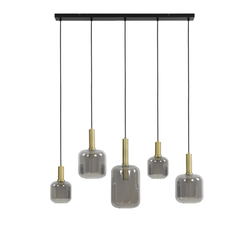 Lámpara colgante retro de vidrio ahumado con detalles en dorado Light and Living Lekar