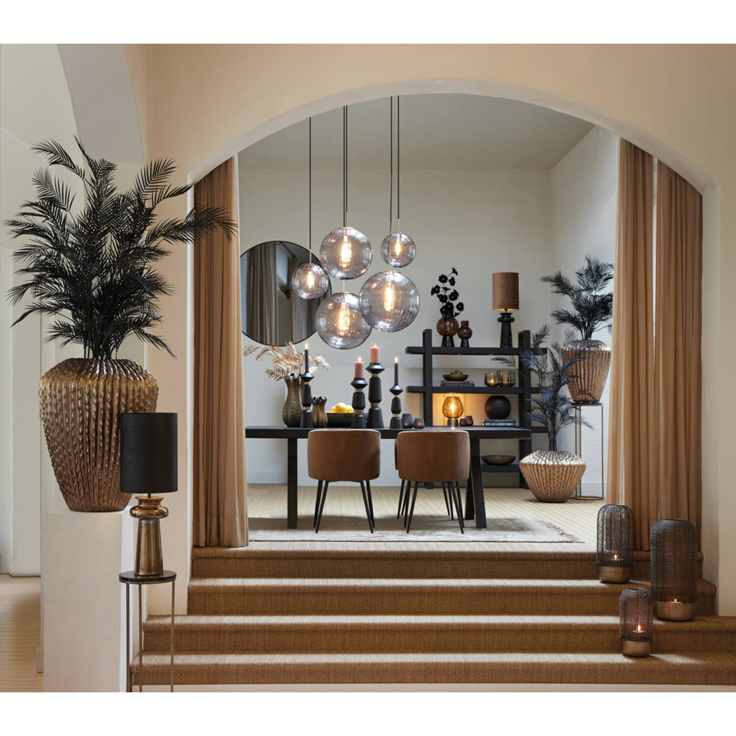La lámpara colgante Light & Living Magdala ofrece un aspecto retro con su vidrio ahumado gris y su acabado dorado. Esta lámpara de un punto de luz es perfecta para comedores, dormitorios y salas de estar. La construcción de vidrio garantiza un aspecto clásico y elegante. El casquillo E27 facilita la elección de la fuente de luz adecuada. Ideal para crear un ambiente refinado y acogedor en tu interior.