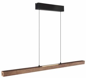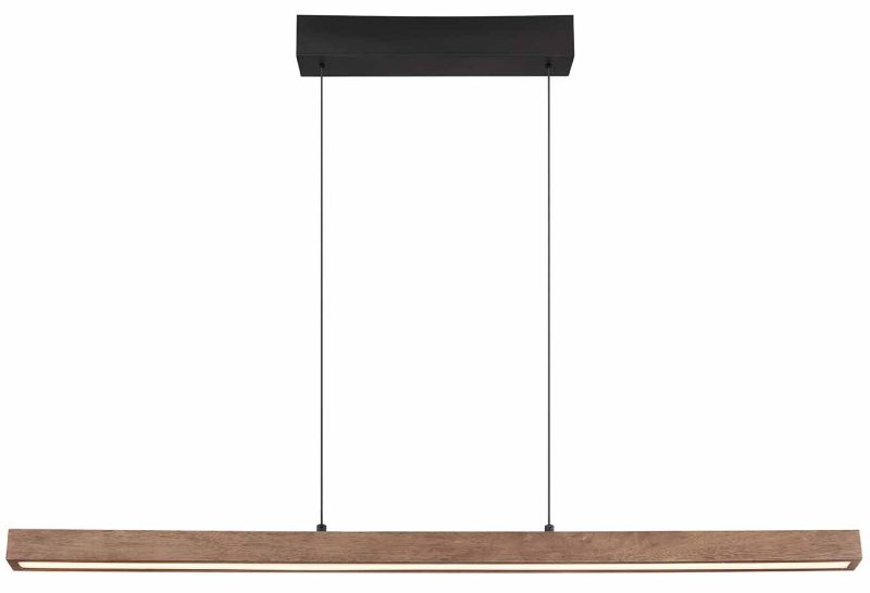 Experimenta la emocionante mezcla de estilo y funcionalidad con esta elegante lámpara colgante. La sutil combinación de madera marrón oscuro, metal negro y plástico opalino irradia un encanto moderno, mientras que el cabrestante y el regulador táctil te ofrecen un control ilimitado sobre la salida de luz. Esta solución de iluminación ambiental emite luz hacia arriba, generando 2040 lúmenes de luz blanca cálida (3000K) con una potencia de 24W, y recuerda tus configuraciones de luz favoritas gracias a la práctica función de memoria. Con su tamaño esbelto de 1150 x 45 mm, esta lámpara es perfecta para enriquecer cualquier interior con una brillantez y elegancia acogedoras.