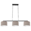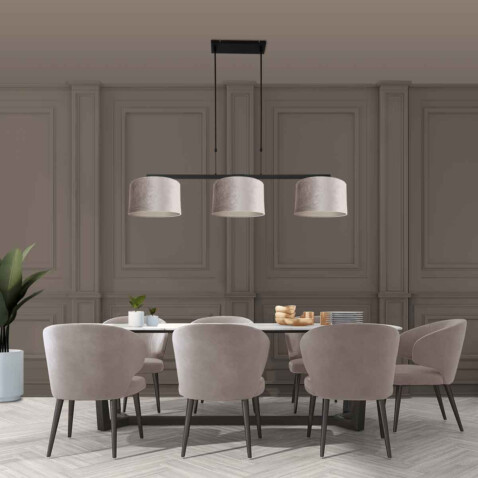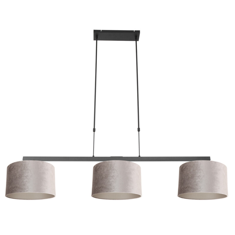 Las tres pantallas de terciopelo gris de 30 cm le dan a la lámpara un aspecto elegante que se integra sin esfuerzo en interiores modernos. Esta lámpara es una elección perfecta para quienes buscan una iluminación elegante y contemporánea. Esta lámpara colgante se entrega con 2 años de garantía.