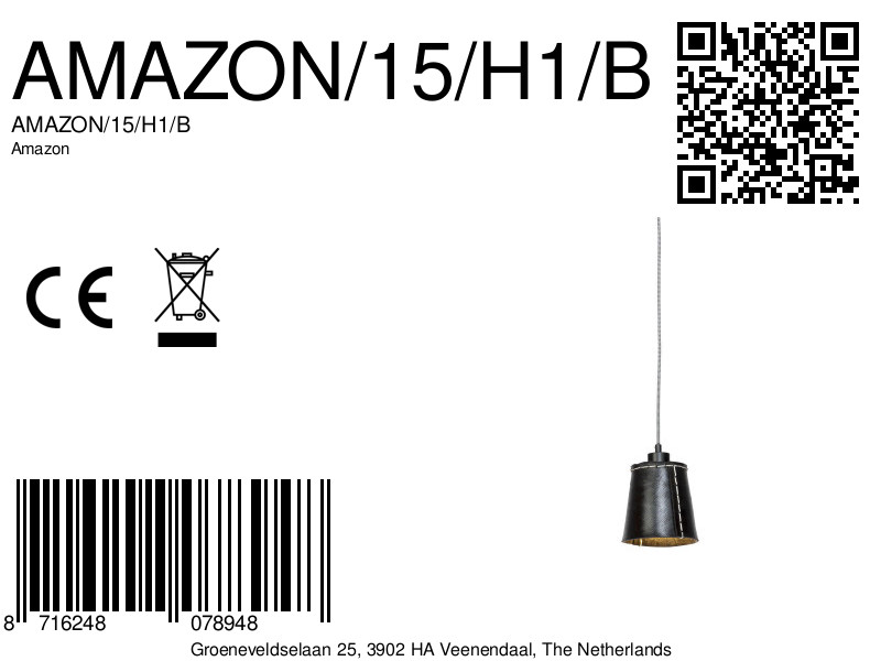 Crea un ambiente vintage con la lámpara colgante Amazon negra. Esta lámpara de goma es única para el comedor, la oficina o el dormitorio. Equipado con un casquillo E27, a prueba de polvo (IP20). Esta lámpara es un punto focal.