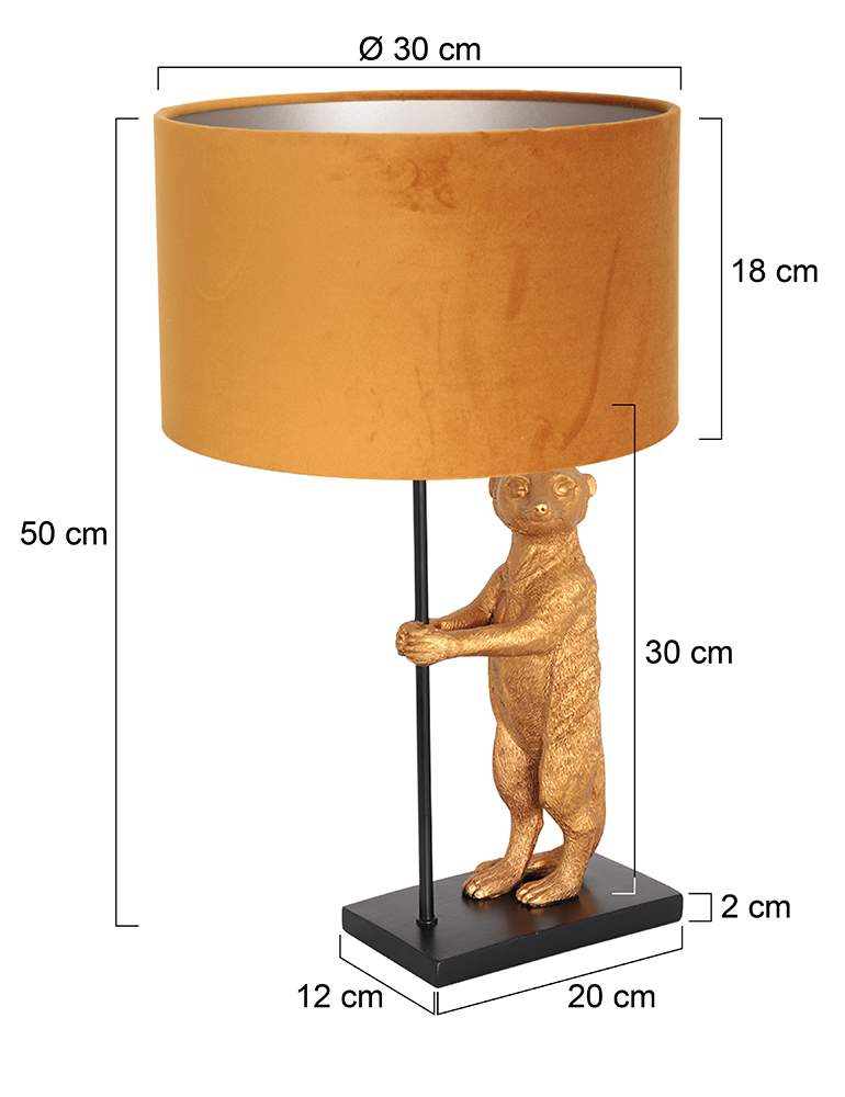 El diseño elegante en negro, dorado y mostaza, junto con el encantador acabado del adorable suricata, convierte esta lámpara de Anne Light & Home en un verdadero artículo de deseo. La decoración de tu hogar obtiene instantáneamente ese algo especial y, además de ser funcional, la lámpara es simplemente muy bonita de mirar.