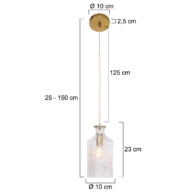 Esta lámpara colgante tiene una altura ajustable entre 30 y 150 cm y una pantalla de vidrio con un diámetro de 10 cm. El casquillo E14 ofrece flexibilidad en la elección de la fuente de luz, permitiéndote ajustar la iluminación a tu gusto. Una adición estilosa a tu comedor, pasillo o dormitorio.