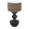 La lámpara de mesa Lyons irradia lujo y refinamiento, gracias a su profundo marco de madera marrón oscuro y su pantalla de terciopelo verde de 40 cm de diámetro y 20 cm de altura. Con una altura de 70 cm, esta elegante lámpara de consola es un complemento perfecto para un interior rústico, ideal para tu consola o como iluminación ambiental en el comedor o la sala de estar.
