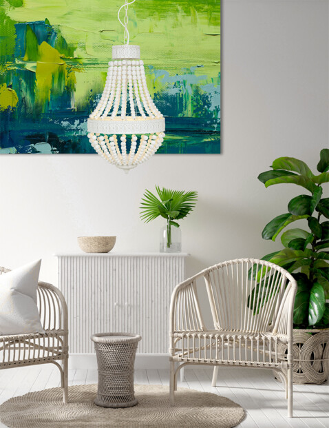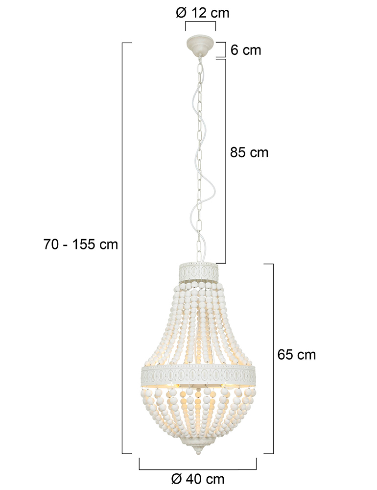 ¿Te gusta una lámpara de araña, pero prefieres una versión más discreta, sin demasiado brillo y destellos? Entonces la lámpara de araña de cuentas blancas Fiona de Mexlite es la lámpara perfecta. El diseño llama la atención y la iluminación proporciona el atractivo que esperas de una lámpara de araña. Gracias a un regulador externo, también puedes controlar la intensidad de la luz.