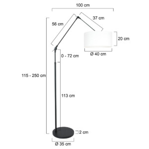 Una combinación única de diseño moderno y funcionalidad. El acabado negro y blanco elegante le da a esta lámpara de pie un aspecto estiloso, mientras que el brazo articulado ajustable asegura una máxima comodidad de uso. Ideal como iluminación ambiental o para dar un poco de luz extra a un espacio de trabajo.