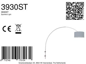 La lámpara de arco de pared de acero cepillado de la serie Sparkled Light de Steinhauer ofrece una iluminación moderna tanto para el hogar como para la oficina. Esta elegante lámpara, fabricada en metal y tela, tiene un aspecto minimalista. El acabado en acero añade un toque de elegancia. Con un casquillo E27 y una clasificación de IP20 de resistencia al polvo, esta lámpara combina estilo y funcionalidad práctica.