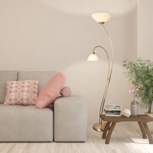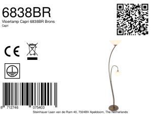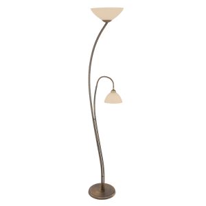 Lámpara de pie clásica de bronce de 2 luces con vidrio marmolado Steinhauer Capri