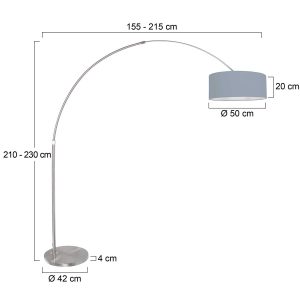 La lámpara de arco Sparkled Light de Steinhauer es una mezcla de estilo y utilidad. La estructura de metal en acero cepillado cuenta con un casquillo E27 ajustable, compatible con fuentes de luz de hasta 40 vatios. La pantalla de lino de color azul profundo, con un diámetro de 50 cm, difunde una iluminación cálida y acogedora. Con una altura máxima de 240 cm y una longitud extensible de hasta 230 cm, esta lámpara de pie se adapta perfectamente a un interior contemporáneo. Se entrega con 2 años de garantía del fabricante.