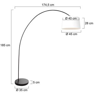 Lámpara de arco moderna y negra con pantalla blanca Mexlite Solva