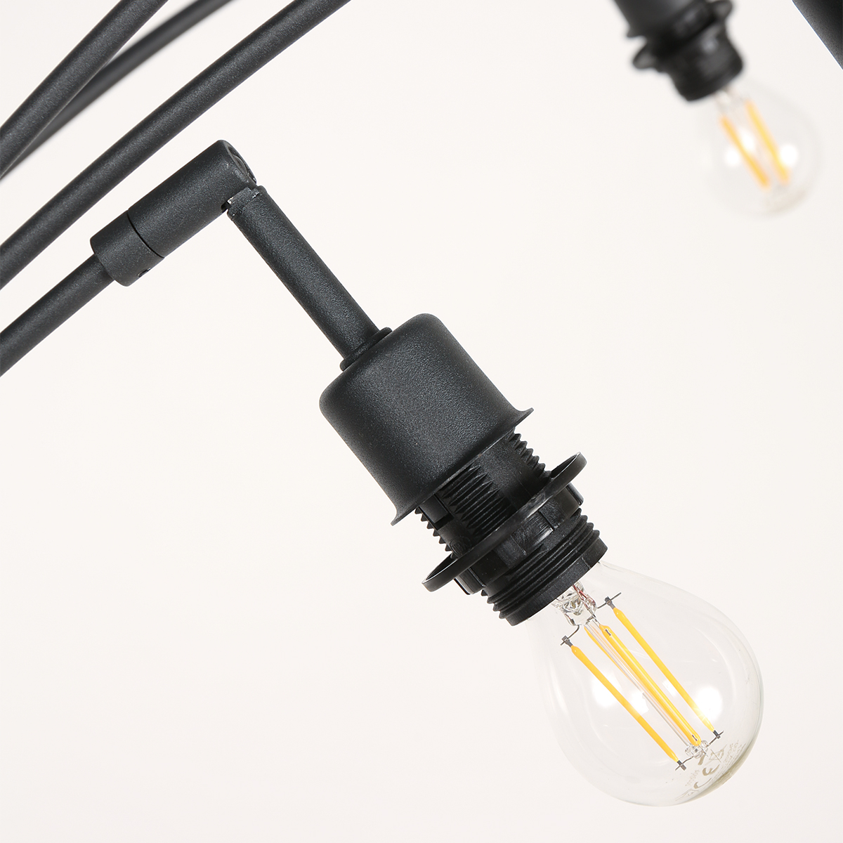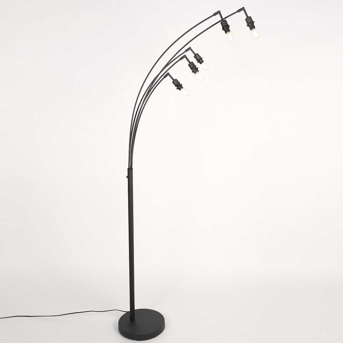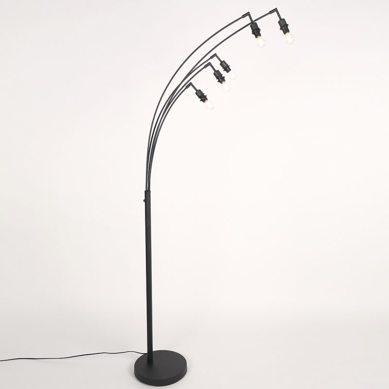 Haz una declaración en tu interior con la lámpara de pie de cinco luces Steinhauer Bambus. Esta única lámpara de arco combina un robusto marco negro con pantallas de bambú juguetonas, creando un aspecto llamativo pero natural. Gracias a los cinco puntos de luz, esta lámpara emite un resplandor cálido y acogedor, perfecto para un rincón de estar cómodo o un elegante comedor.