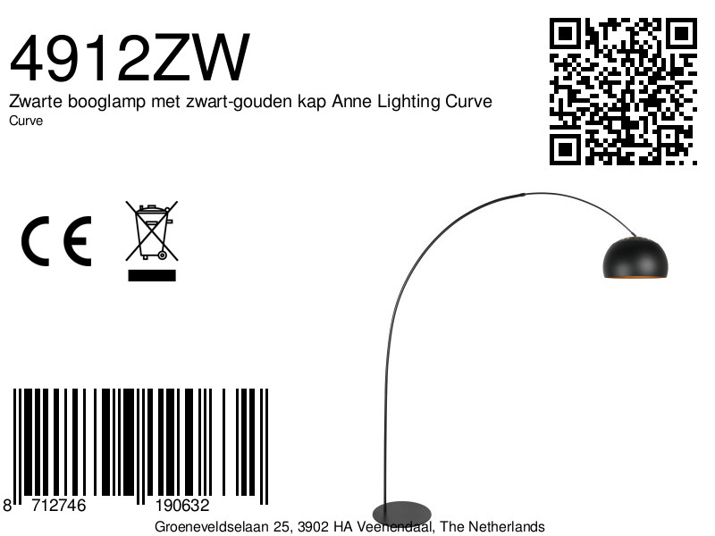 La Curve 4912ZW es una elegante lámpara de arco negra con una lujosa pantalla metálica negro dorada. El armario sofisticado se curva graciosamente hacia adelante y es perfecto para iluminar un rincón de estar, mesa de centro o silla de lectura. El interior dorado de la pantalla proporciona una cálida y acogedora reflexión de luz.