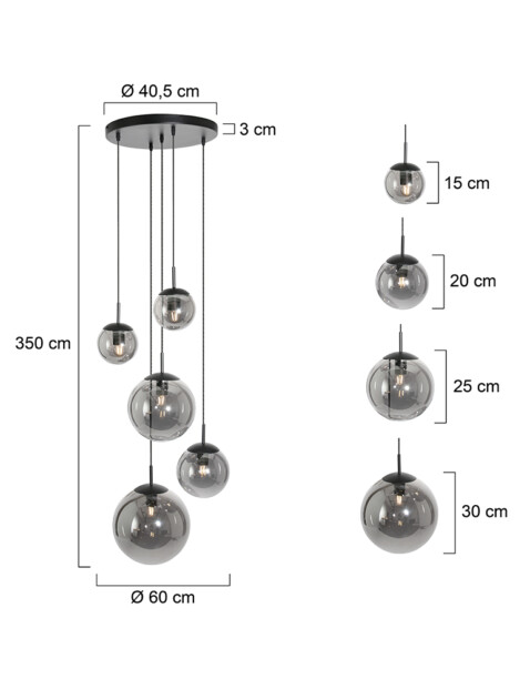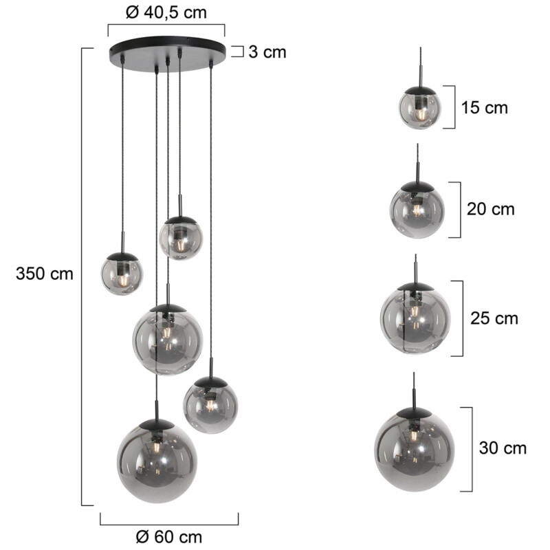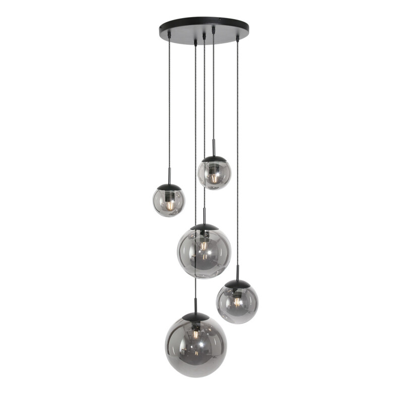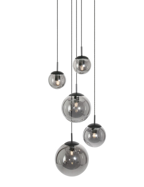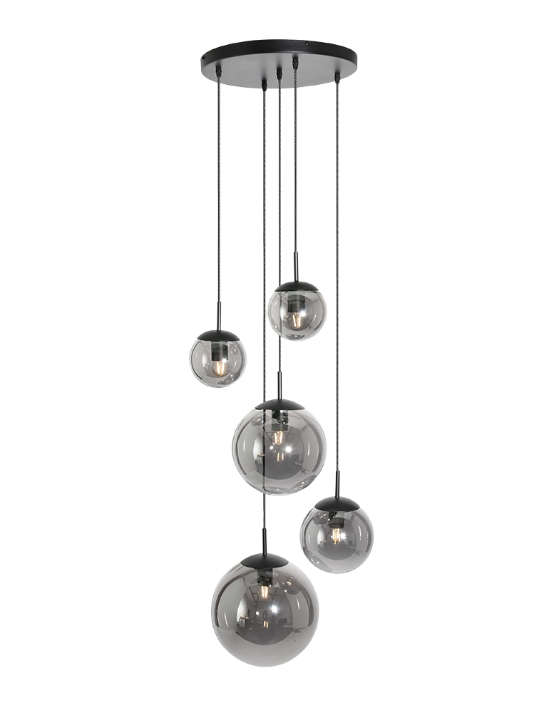 ¡Una joya más de Steinhauer! ¿Y llevas tiempo buscando una lámpara que se vea bien en un espacio alto? “Bollique” es una impresionante lámpara colgante del diseñador de lámparas neerlandés Steinhauer. Ha sido diseñada especialmente para atrios, escaleras y habitaciones altas. A cinco cables de diferentes longitudes cuelgan esferas de vidrio ahumado gris con múltiples dimensiones. “Bollique”, un guiño moderno a los años setenta.