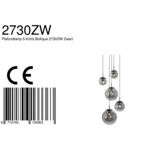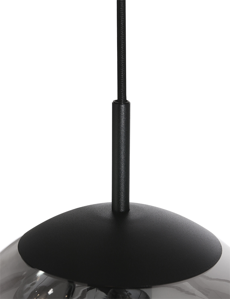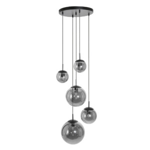 La lámpara de techo Bollique combina cinco esferas de luz de vidrio ahumado en diferentes tamaños en un todo estilizado. El acabado reflectante de la luz crea un sutil juego de reflexión y dispersión de luz. Con una longitud máxima de 350 cm, la lámpara es ideal tanto para techos estándar como para altos atrios. La placa de techo tiene un diámetro de 40,5 cm, lo que garantiza una suspensión equilibrada. Cada esfera de luz está equipada con un portalámparas E27 y es adecuada para fuentes de luz de hasta 40 vatios. Los cables de plancha negros refuerzan el carácter contemporáneo de la lámpara.