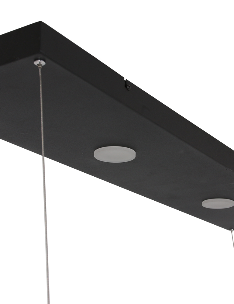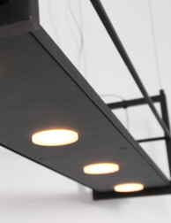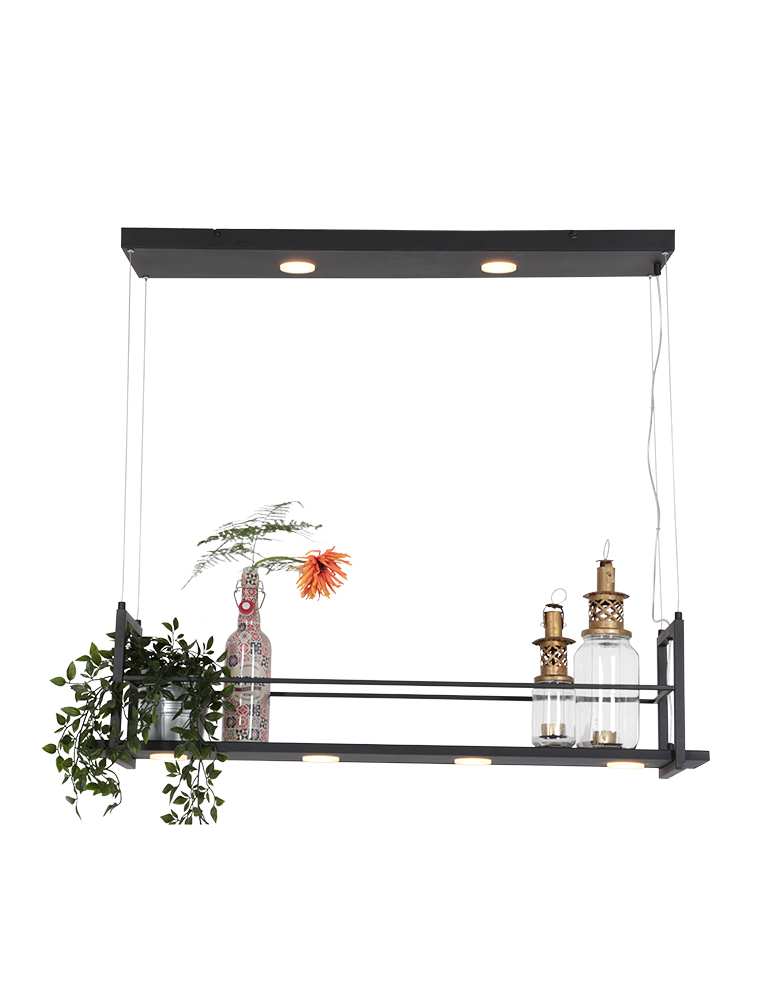 Asegúrate de tener suficiente luz en la cocina con esta lámpara colgante de seis luces para la cocina. Puedes colgar la lámpara en la pared o sobre la isla de cocina. Pero la lámpara de un metro de ancho también se ve hermosa sobre la mesa de la cocina. En el estante puedes colocar algunos utensilios de cocina ligeros o un par de plantas bonitas. La luz es regulable.