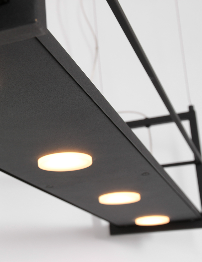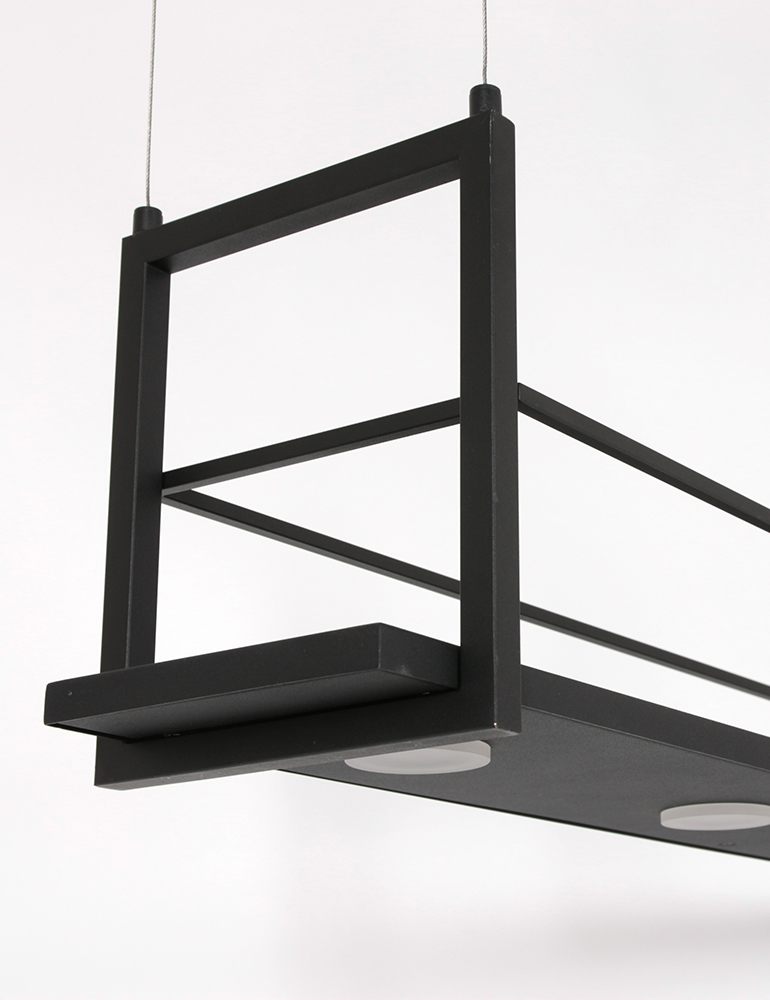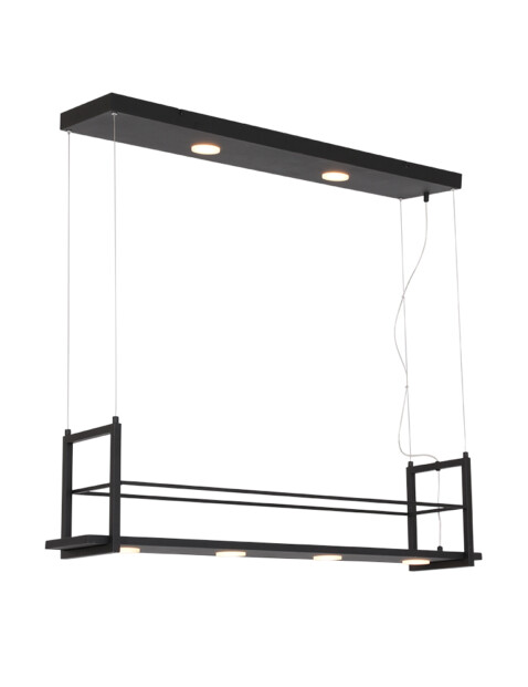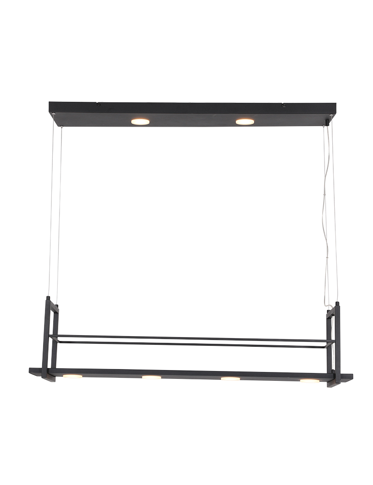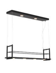 La lámpara colgante Tor es una mezcla perfecta de funcionalidad y diseño. Con un ancho de 100 cm y seis puntos de luz (4 abajo y 2 arriba), esta lámpara ofrece una iluminación óptima y espacio de almacenamiento adicional para hierbas o decoraciones. La temperatura de color de 2700 Kelvin proporciona una apariencia cálida, y la función ajustable en altura (40-150 cm) hace que esta lámpara sea ideal para diversas aplicaciones.