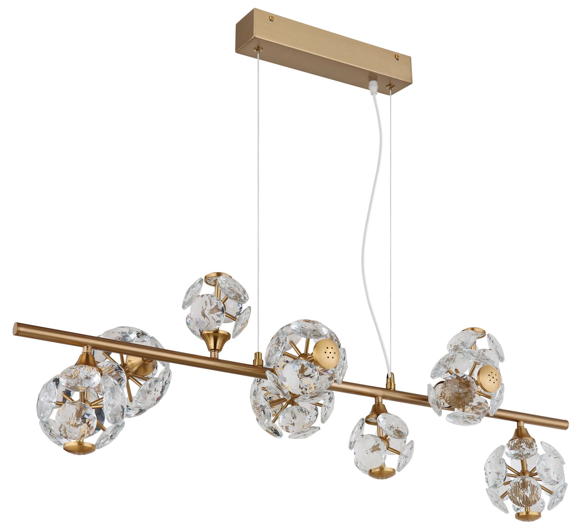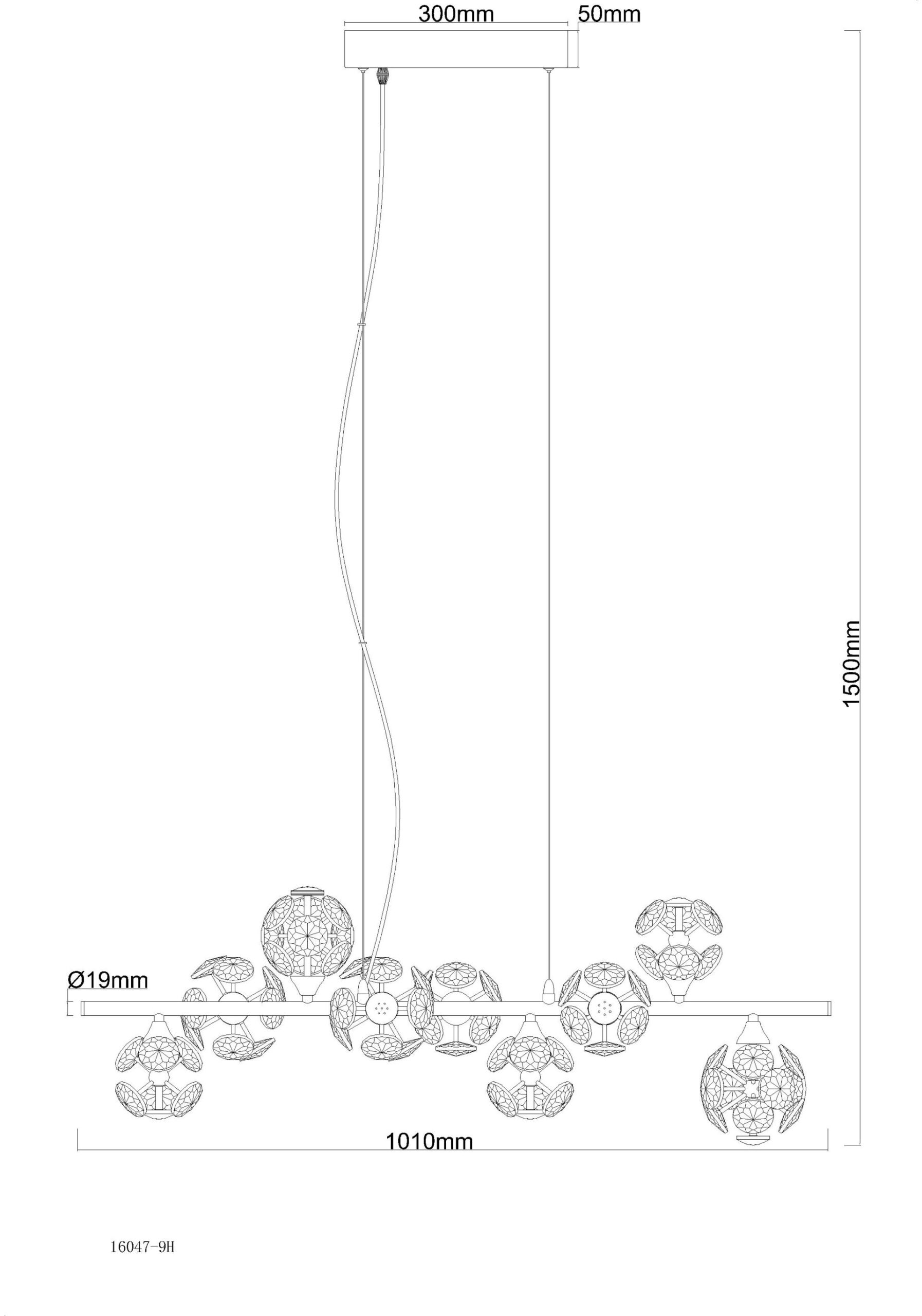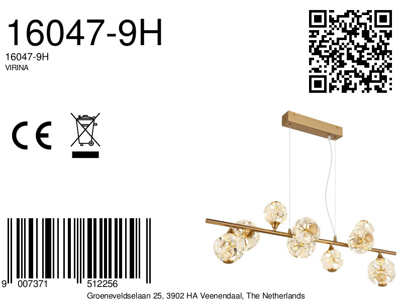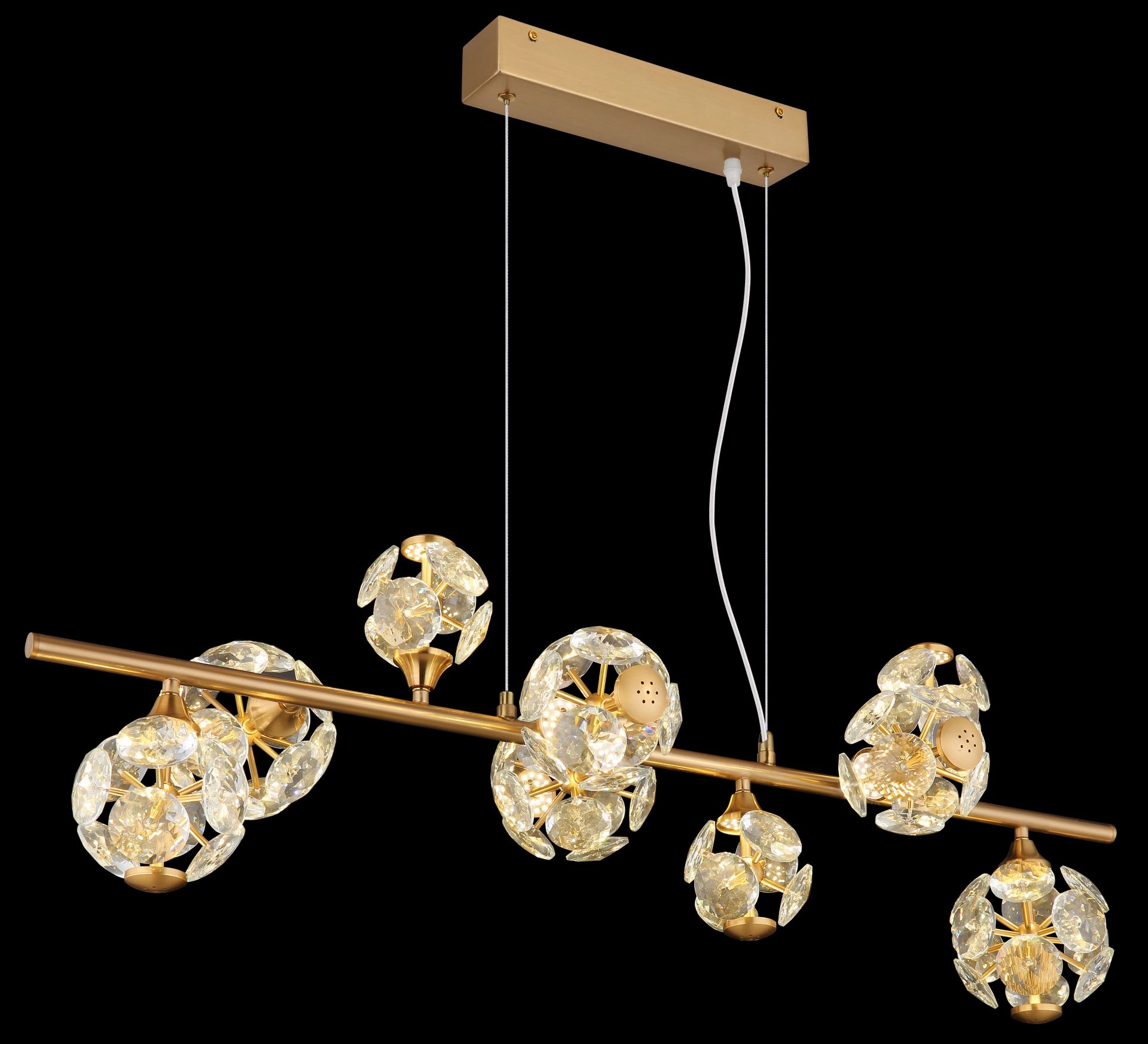 La lámpara colgante VIRINA es una magnífica mezcla de diseño elegante y materiales de lujo, perfecta para cualquier espacio. La barra recta en metal dorado sostiene diversas esferas, decoradas con brillantes cristales K9 que reflejan la luz de manera impresionante. Con unas dimensiones de 1010 mm de largo y 345 mm de ancho, esta lámpara es extremadamente adecuada para espacios más grandes como salas de estar, comedores y pasillos. Gracias a la tecnología LED integrada, la lámpara ofrece una excelente salida de lúmenes de 7136 lúmenes y emite un color de luz agradable de 3000 K, lo que proporciona una atmósfera cálida y acogedora.