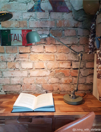Lámpara de mesa industrial redonda verde ajustable Mexlite Davin
