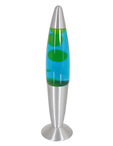La lámpara de lava Volcan en acero combina un encanto retro con iluminación relajante. La lámpara en forma de cohete contiene un líquido azul y verde que se mueve elegantemente hacia arriba y hacia abajo cuando la lámpara se calienta. Equipado con un casquillo E14 y una fuente de luz G30 de 25 vatios. La lámpara es fácil de usar con un interruptor de encendido/apagado en el cable, perfecto para crear una atmósfera relajante en cualquier habitación.