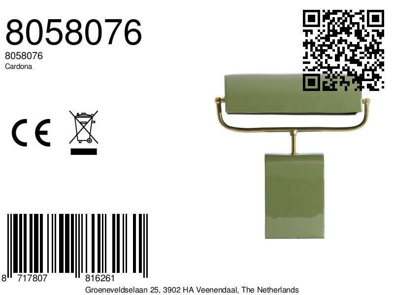 La lámpara de mesa Cardona en verde claro con dorado es un diseño juguetón y elegante. El aspecto retro combinado con el color fresco la convierte en un verdadero punto focal. Los detalles dorados le dan un toque de lujo. Ideal como lámpara de escritorio o como acento alegre en la sala de estar. La lámpara tiene una altura de 38 cm y mide 35 por 15,5 cm. Está hecha de metal y tiene un casquillo E27. La lámpara se entrega sin fuente de luz para que puedas determinar el color y la intensidad de la luz. Es regulable en combinación con una fuente de luz de 4 etapas y un interruptor de cable. El control se realiza a través del interruptor en el cable. Con la clasificación IP20 es adecuada para uso interior. Incluye cable y 2 años de garantía.