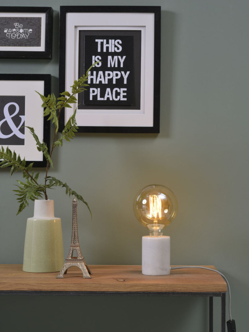 Crea una apariencia moderna y refinada en tu comedor o dormitorio con la base de lámpara de mesa blanca Athens. Esta lámpara, hecha de mármol, ofrece un aspecto lujoso y atemporal. Con un casquillo E27 y una protección IP20, proporciona una iluminación elegante y confiable.