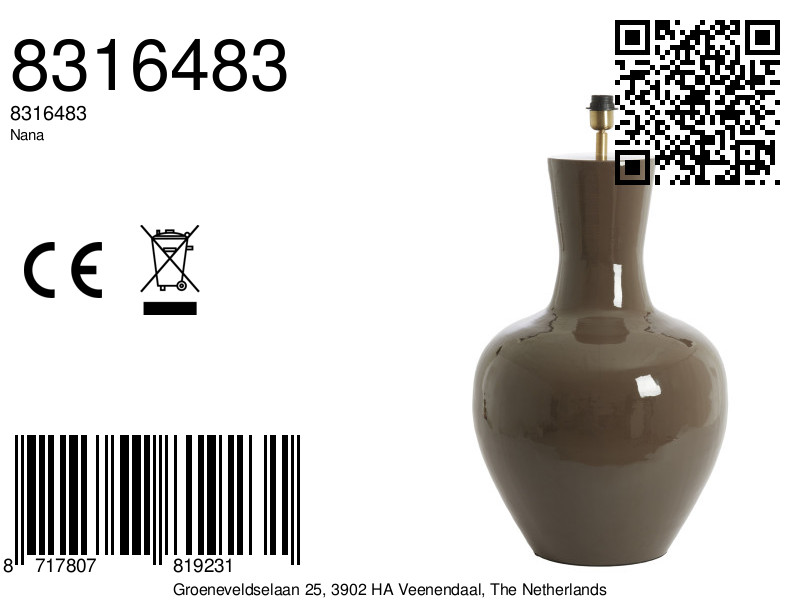 La lámpara de mesa Nana de Light & Living en marrón oscuro brillante irradia calidez y lujo, y forma una declaración ambiental en tu hogar. Con sus impresionantes dimensiones de Ø46 x H.69 cm y su profundo color marrón con un acabado brillante, esta base de lámpara emana clase y elegancia. Fabricada con metal de alta calidad, garantiza durabilidad y calidad. Esta lámpara de mesa se adapta perfectamente a una sala de estar con acentos cálidos, pero también se destaca en un vestíbulo moderno o en un dormitorio elegante. El funcionamiento se realiza a través del interruptor en el cable y la lámpara se entrega con el cable incluido. Equipado con un casquillo E27, tienes la libertad de elegir la fuente de luz perfecta, como un LED regulable. Gracias a su clase IP20, este modelo es adecuado para uso interior. La serie Nana combina formas robustas con un acabado brillante y le da a cualquier interior una apariencia lujosa.