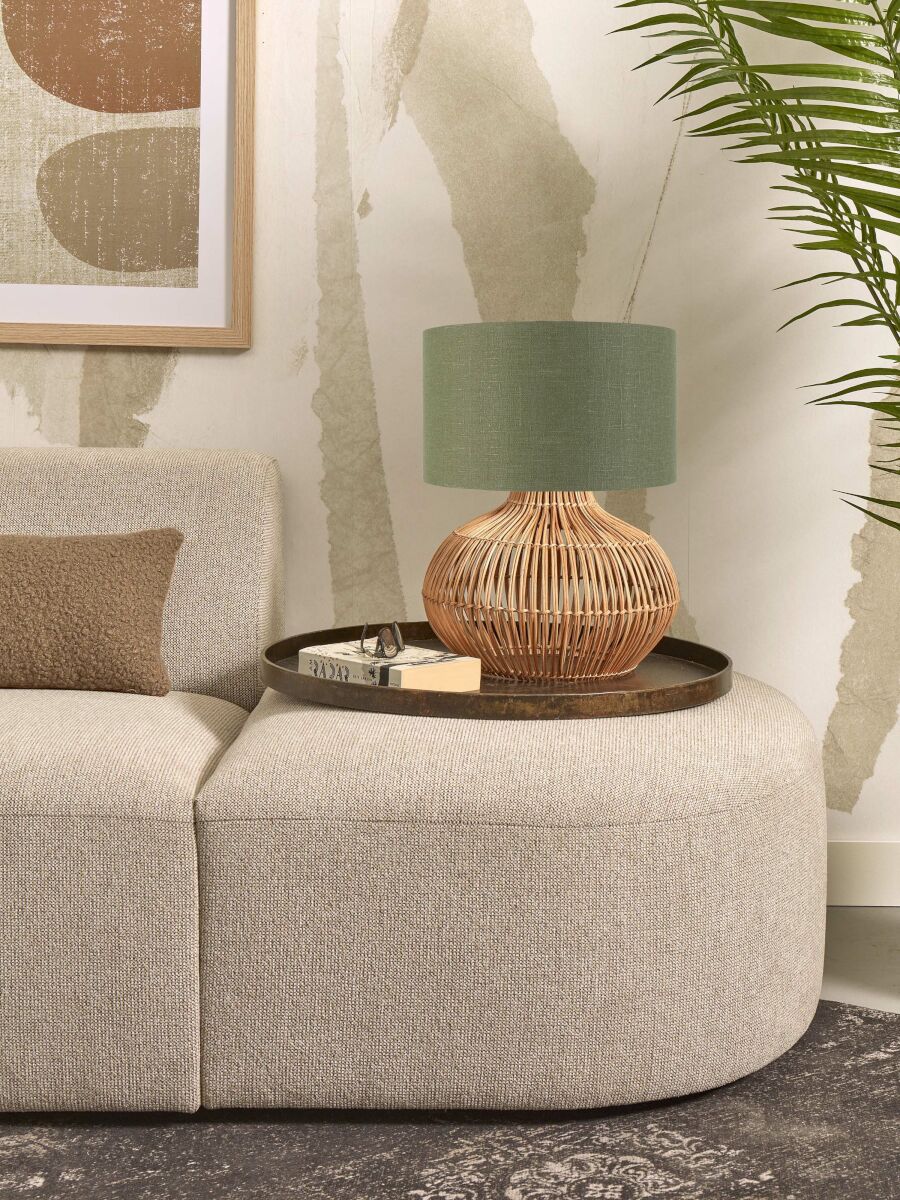 Lámpara de mesa bohemia de ratán y lino verde GOOD & MOJO Kalahari