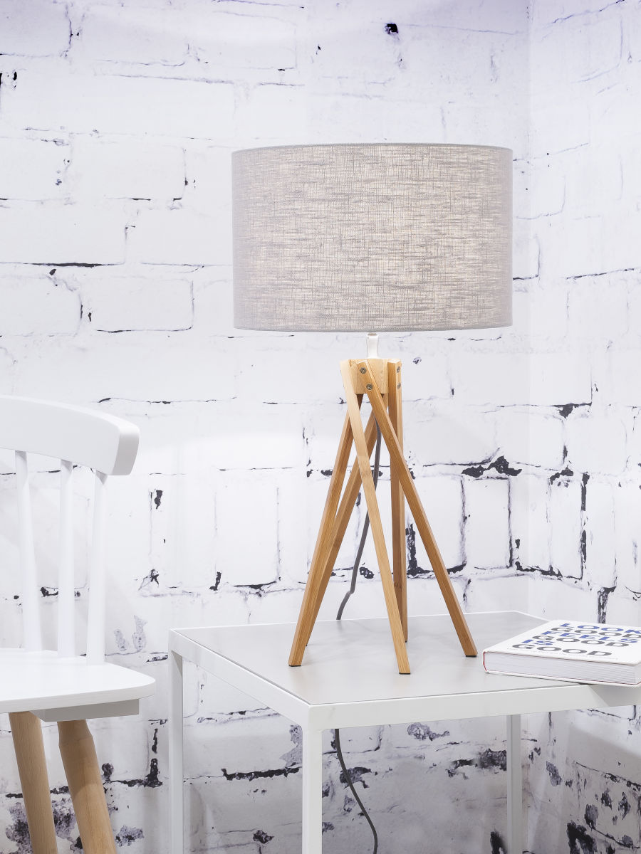 Lámpara de mesa de bambú de lino gris bohemio de GOOD&MOJO Kilimanjaro. Esta lámpara combina funcionalidad y estilo, perfecta para el comedor, la oficina (en casa), el dormitorio o la sala de estar. Adecuada para casquillo E27 y a prueba de polvo (IP20). Fuente de luz no incluida. Para un toque elegante.