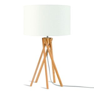 Lámpara de mesa de bambú negro y lino bohemio de GOOD&MOJO Kilimanjaro. Un diseño elegante y funcional para el comedor, oficina (en casa), dormitorio o sala de estar. Funciona con casquillo E27 y es a prueba de polvo (IP20). Fuente de luz no incluida. Añade un toque moderno y bohemio.