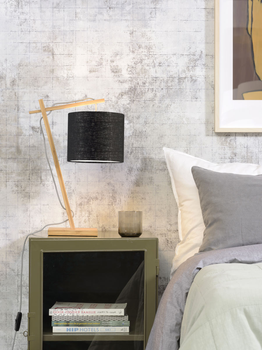 Lámpara de mesa bohemia negra de lino GOOD & MOJO Andes