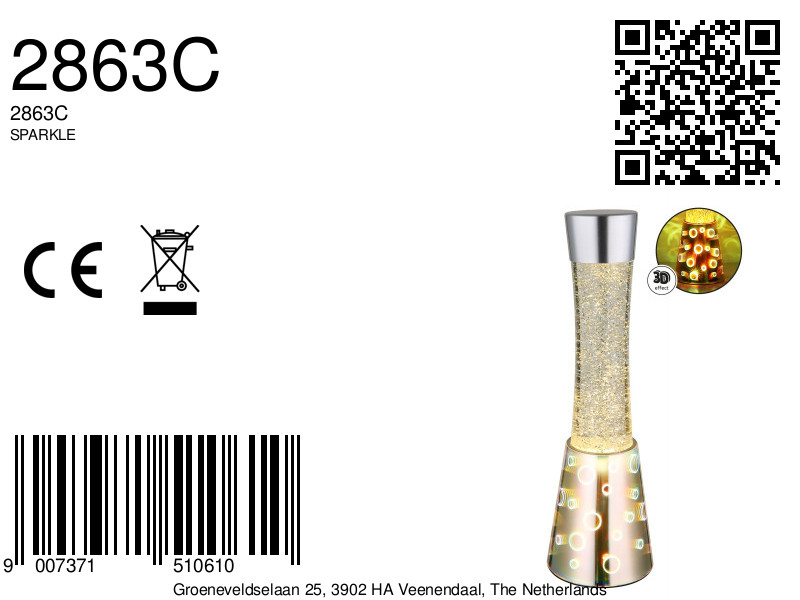 Lámpara de mesa brillante con efecto 3D y purpurina Sparkle