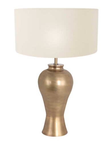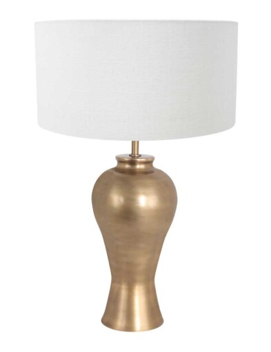 La lámpara de mesa en forma de jarrón de bronce Brass es una hermosa mezcla de diseño clásico y refinamiento moderno. El cálido marco de bronce irradia lujo y se acentúa con una pantalla de lino blanca, que proporciona una suave y difusa distribución de la luz. Gracias a la base E27, la lámpara es adecuada para diversas fuentes de luz de hasta 40 vatios.