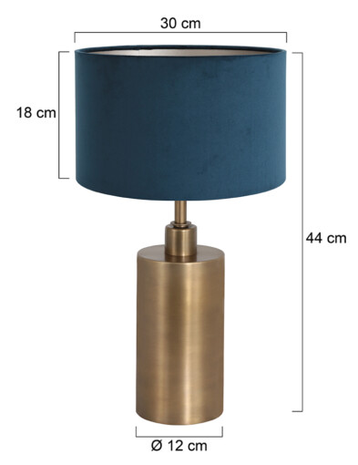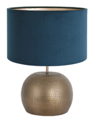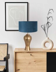 La lámpara de mesa de bronce Brass es una adición acogedora a cualquier interior, donde el diseño clásico y la elegancia contemporánea se encuentran. Con una altura de 34 cm, este modelo compacto es perfecto para una mesita de noche, un aparador o una mesa auxiliar. La combinación del marco de bronce y la pantalla de terciopelo azul profundo le da a la lámpara una apariencia lujosa y refinada.