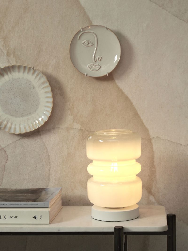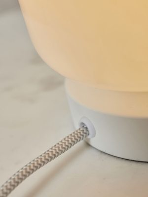 La lámpara de mesa blanca de la serie Verona ofrece una apariencia fresca con su diseño clásico. El vidrio blanco y la base de metal la convierten en una opción ideal para un dormitorio o salón moderno. IP20 y casquillo E27 la completan.
