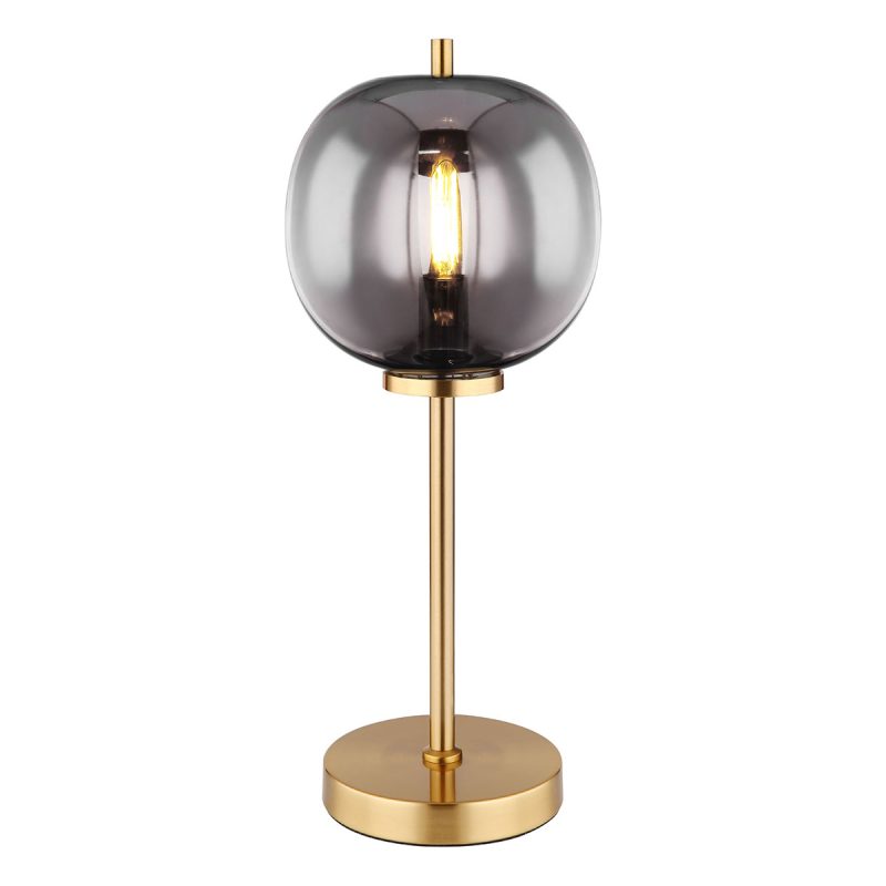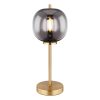 Esta lámpara de mesa de 45 cm de altura es un elegante complemento para su interior. La base de metal en color latón (ø 15 cm) proporciona estabilidad, y la parte superior está equipada con una pantalla de vidrio ahumado (ø 18,5 cm) que es compatible con una bombilla E14 a su elección. El cable de 150 cm con interruptor facilita encender y apagar la lámpara. Combine con otros modelos de la misma serie para crear un ambiente con estilo.