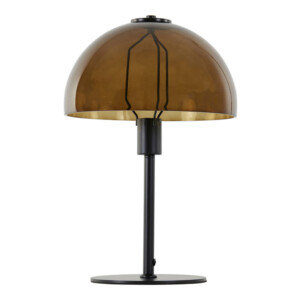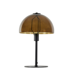 Lámpara de mesa clásica negra con vidrio ahumado marrón Light and Living Mellan
