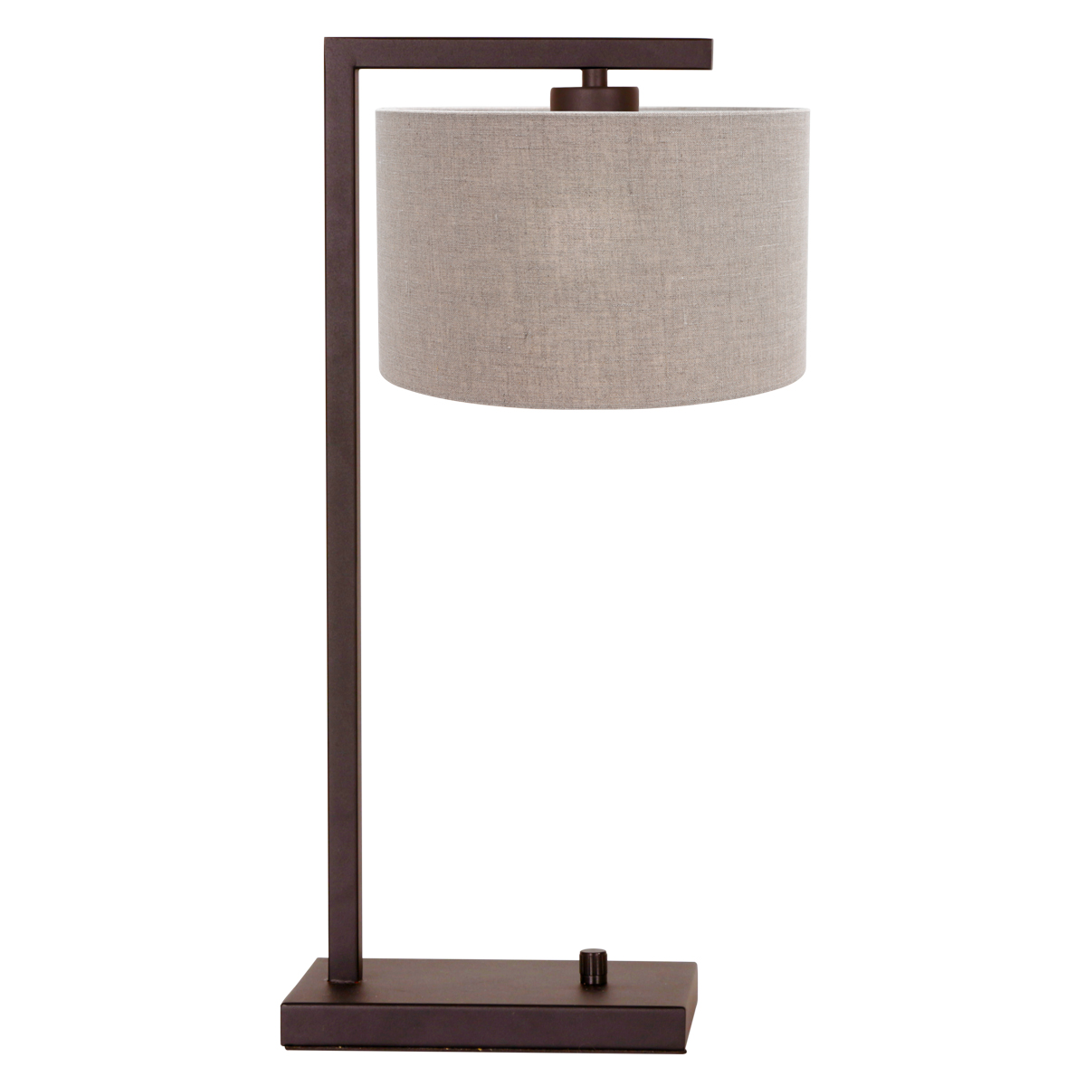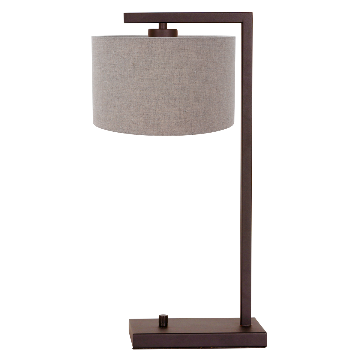 Lámpara de mesa compacta de cacao con lino gris y mucha textura Steinhauer Stang