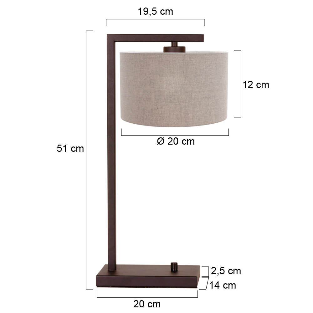 Con una altura de 51 cm, este modelo es ideal para muebles más pequeños como mesas auxiliares, armarios o escritorios. La combinación de cacao y lino gris hace que esta lámpara sea especialmente adecuada para interiores modernos, tranquilos y naturales.