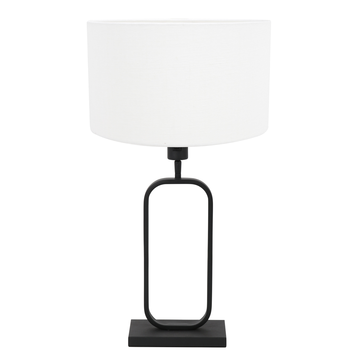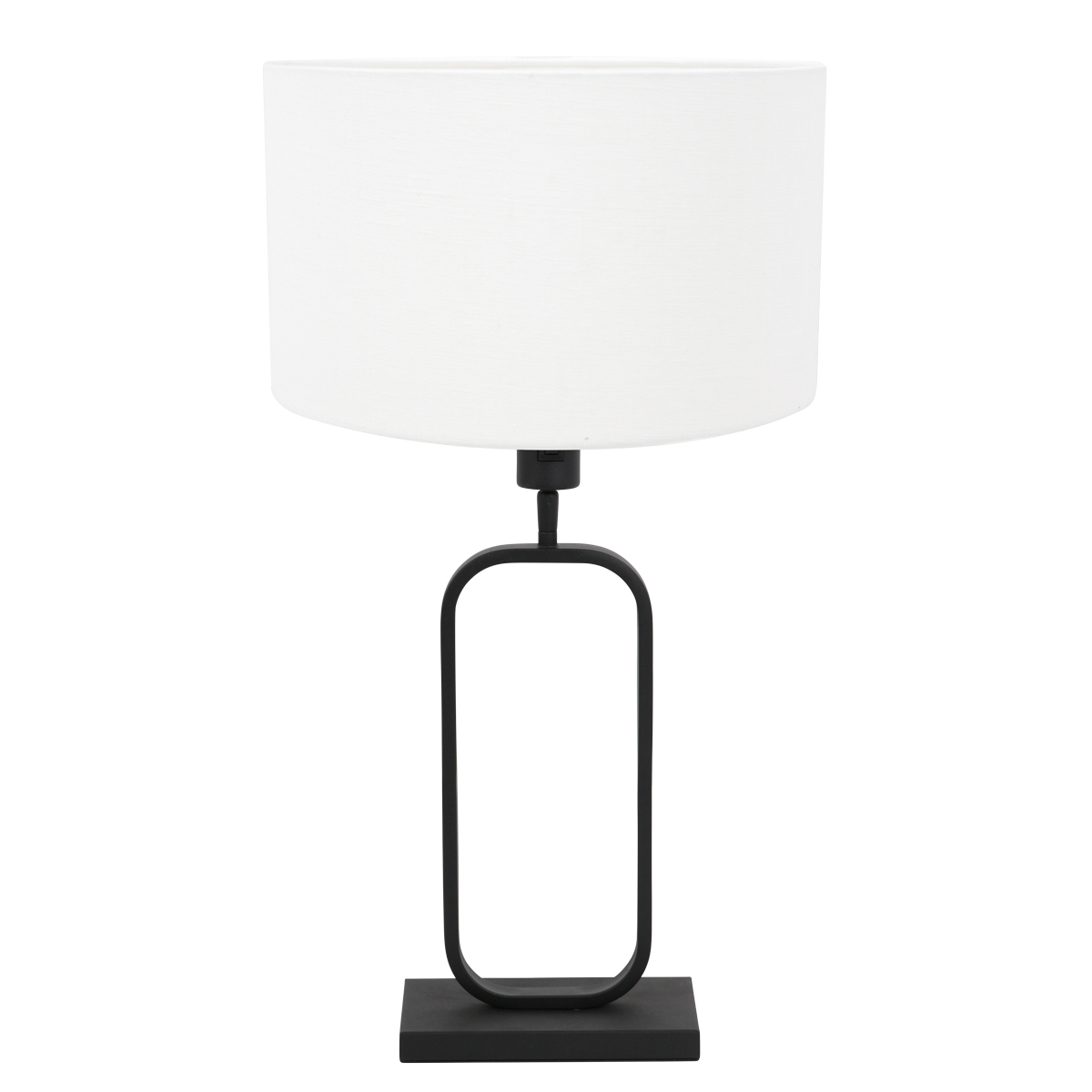 Lámpara de mesa con lino blanco grueso y marco de diseño negro Steinhauer Stang