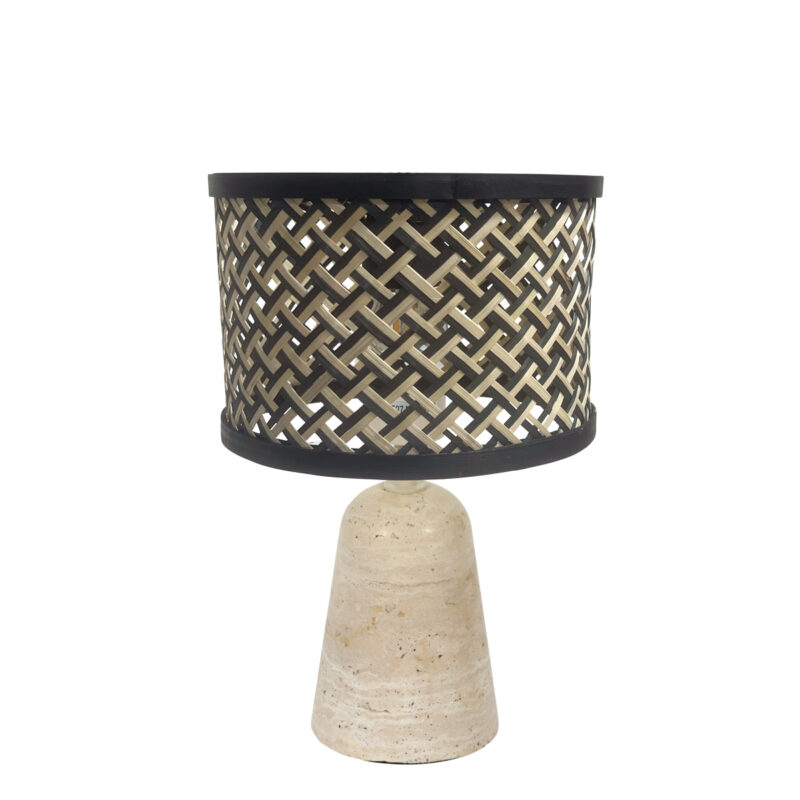 Lámpara de mesa con pantalla de bambú y base de travertino Anne Light Travino