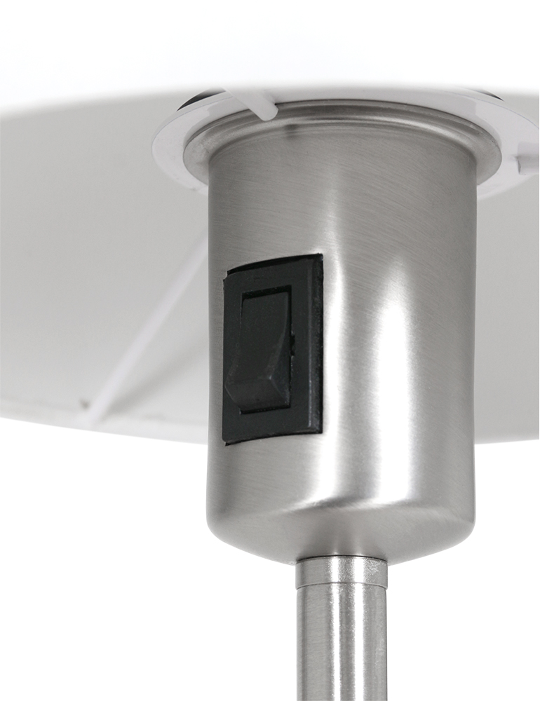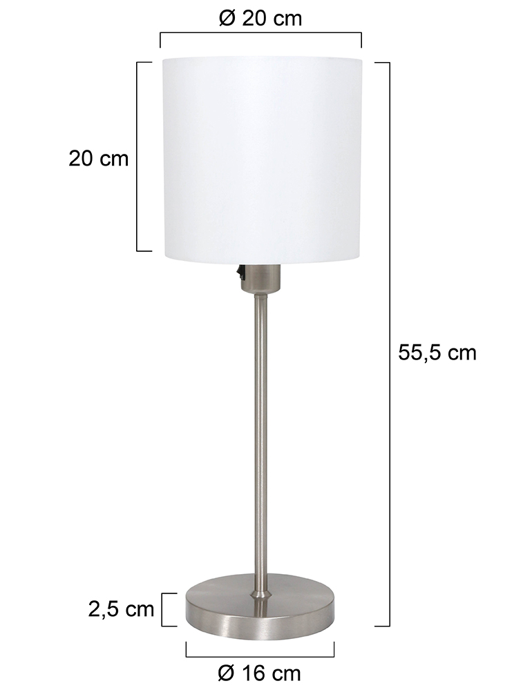 La lámpara de mesa Noor de Mexlite combina un marco metálico estiloso con una pantalla de lino refinada. La pantalla blanca tiene un diámetro y altura de 20 cm. La altura total de la lámpara es de 55,5 cm, con un diámetro de base de 16 cm. La base E27 es adecuada para fuentes de luz de hasta 40 vatios. La lámpara se entrega con un cable de 180 cm y tiene un interruptor de encendido/apagado en la base.