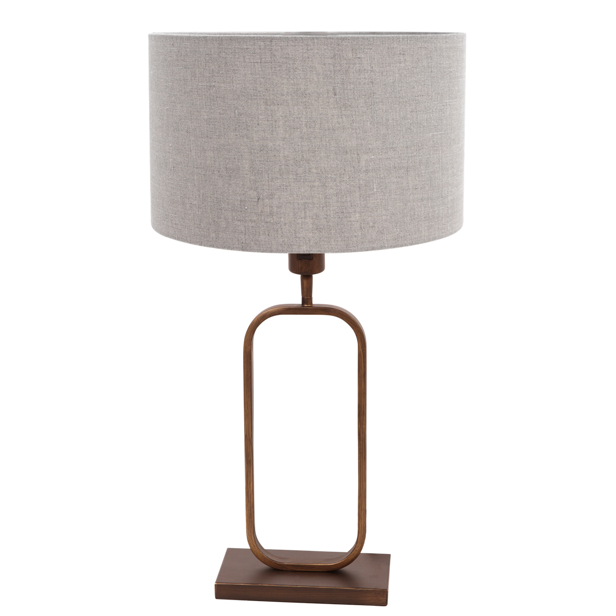 Rust, calor y diseño moderno se combinan sutilmente en esta lámpara de mesa Stang. El esbelto marco de bronce forma una base elegante para la pantalla en lino gris, que gracias a su rica textura proporciona una suave y acogedora distribución de luz. Por ello, esta lámpara se siente perfectamente en casa sobre un aparador, mesa auxiliar o mesita de noche en un interior atemporal.